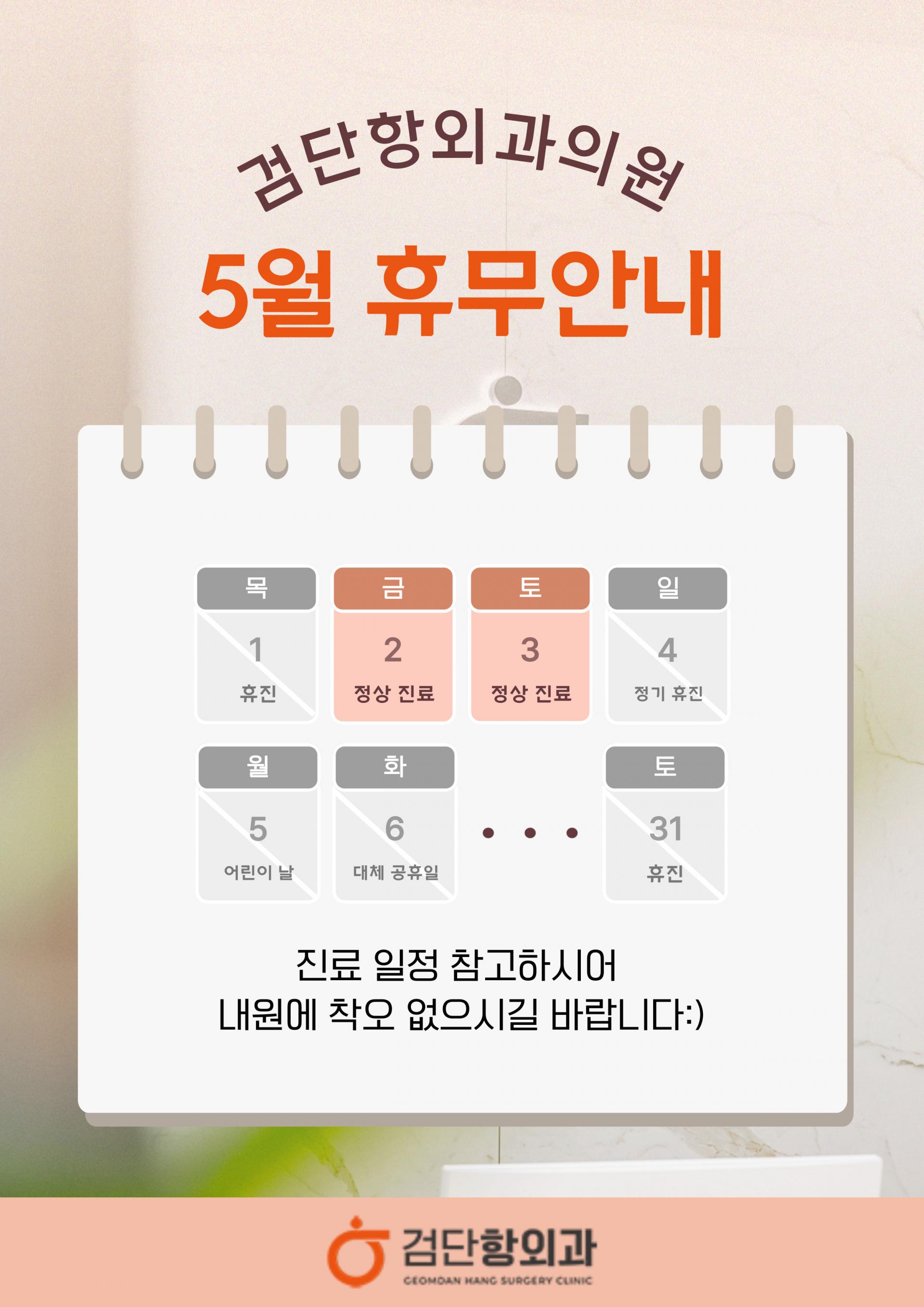 5월 2일과 3일은 정상 진료를 진행합니다.